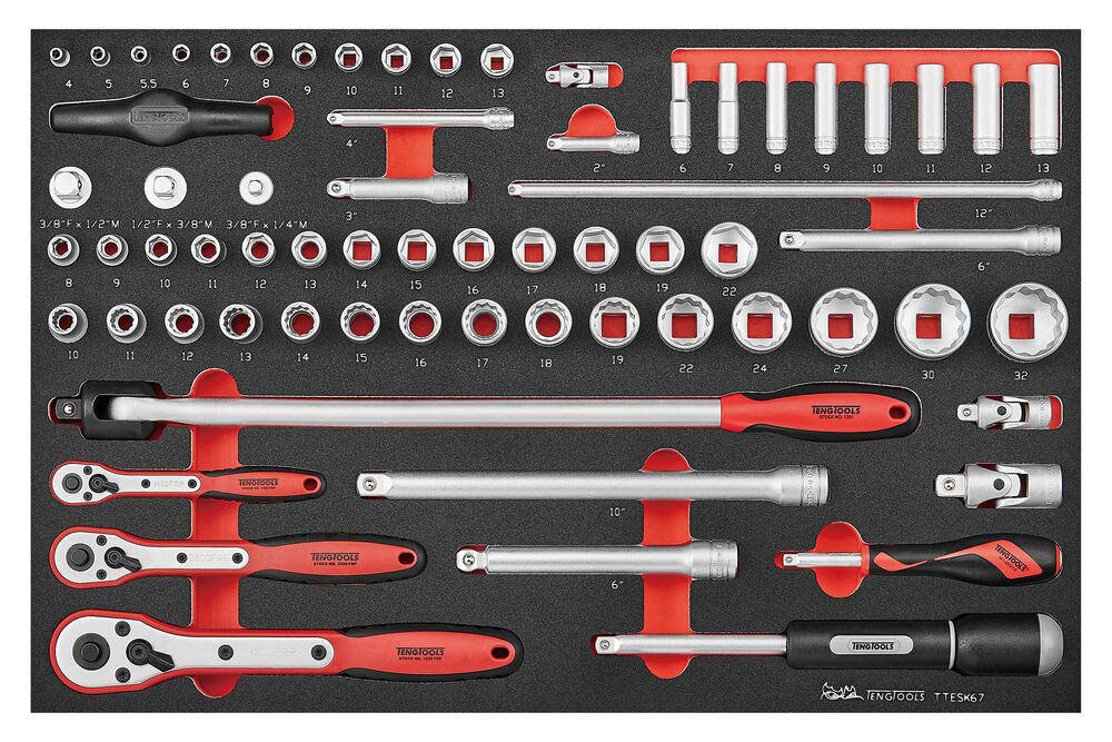 1/4"-, 3/8"- & 1/2"-Steckschlüssel-Set, FOAM4X4, 67 Teile