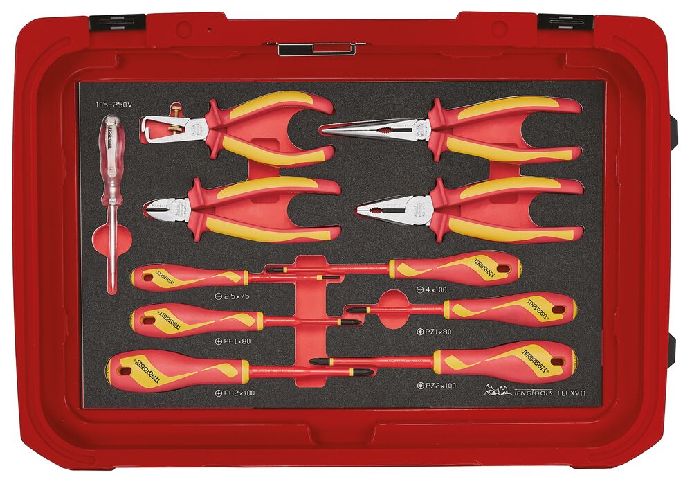 - Suministrado en el exclusivo maletín de servicio TengTools con las herramientas distribuidas en 3 juegos FOAM3 especialmente diseñados para ajustarse al maletín de servicio