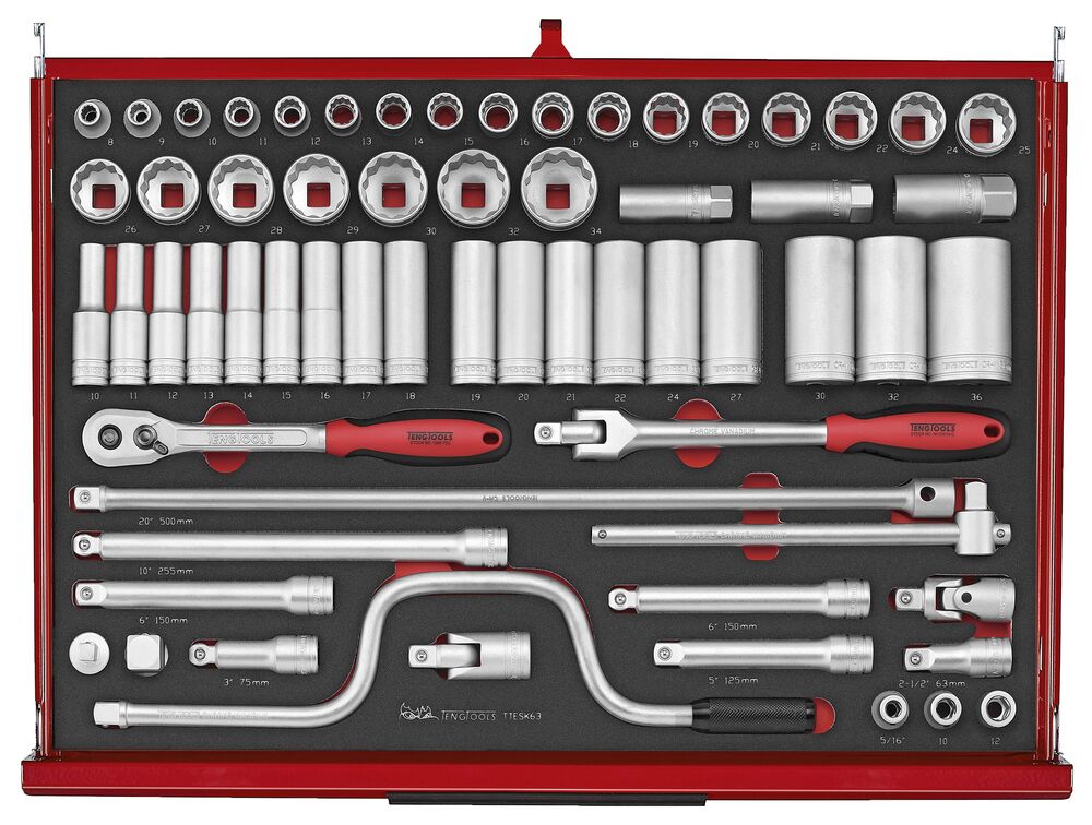 63-elementowy zestaw kluczy nasadowych z chwytem kwadratowym 1/2", Teng Tools TTESK63