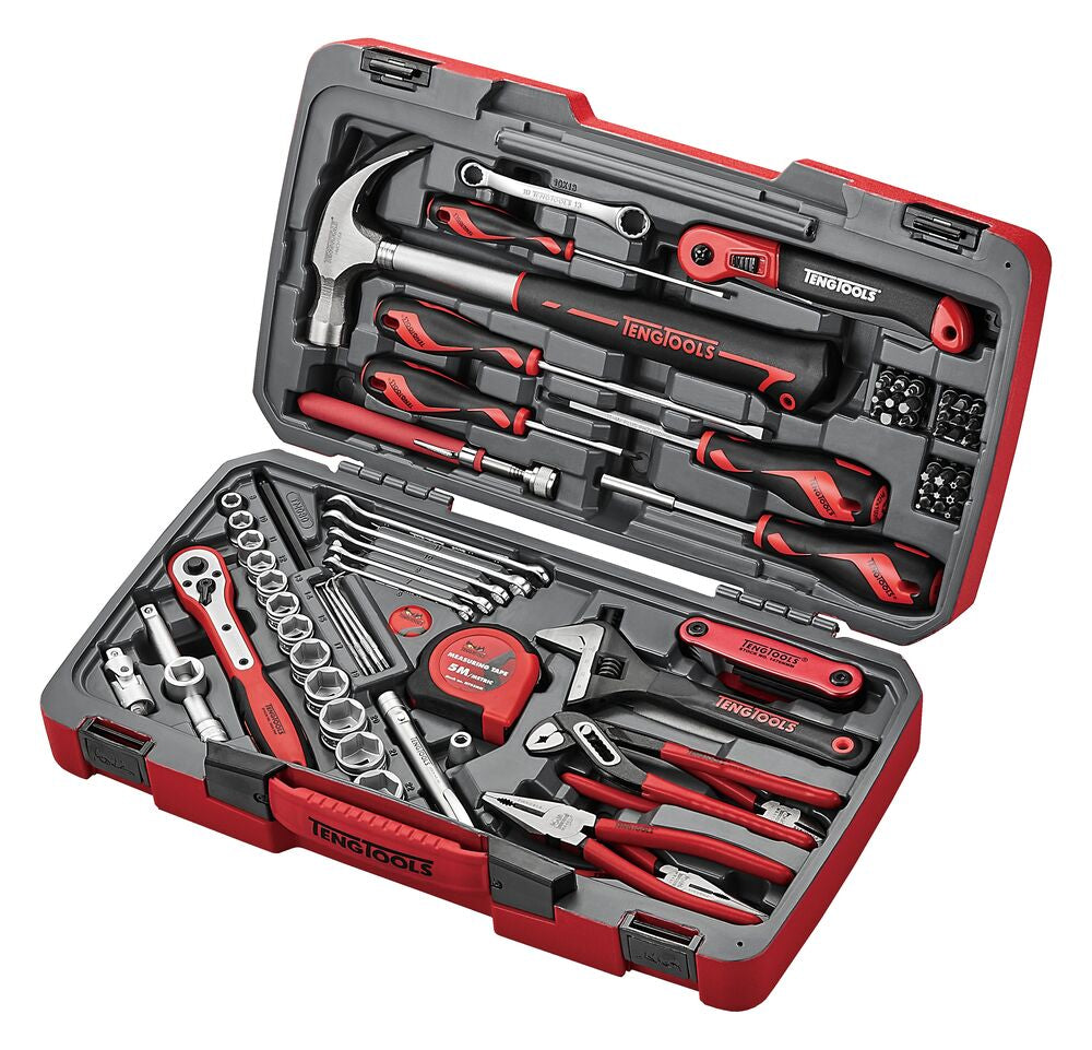 - Combination spanners, adjustable wrench, a hex key set, LED light, utility knife, hook and pick set. Measuring tape, foldable saw, claw hammer, magnetic pick up, pliers and screwdrivers.