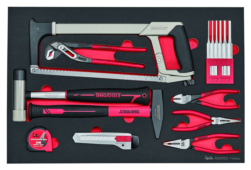 - Innehåller mätverktyg, slagverktyg och skärande verktyg samt de vanligaste tängerna